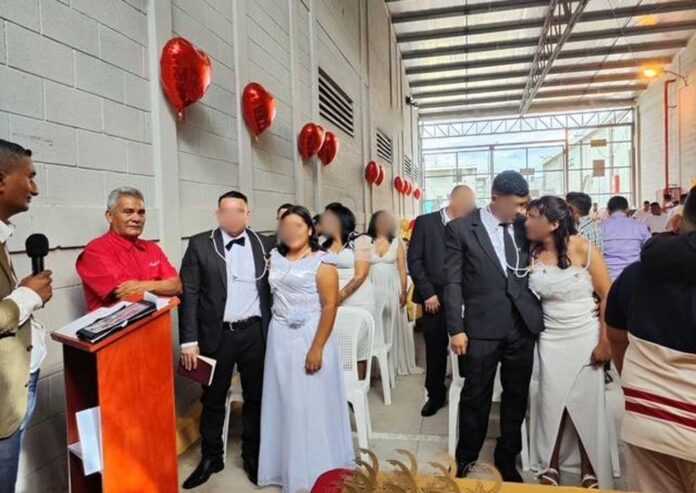 Tegucigalpa – En un emotivo acto lleno de esperanza y fe, un total de 15 privados de libertad del Módulo de Máxima Seguridad del Centro Penitenciario de Morocelí contrajeron matrimonio con sus respectivas parejas, en una ceremonia religiosa oficiada por el Pastor Osman Flores del Ministerio Casa de Restauración y Avivamiento de la zona.