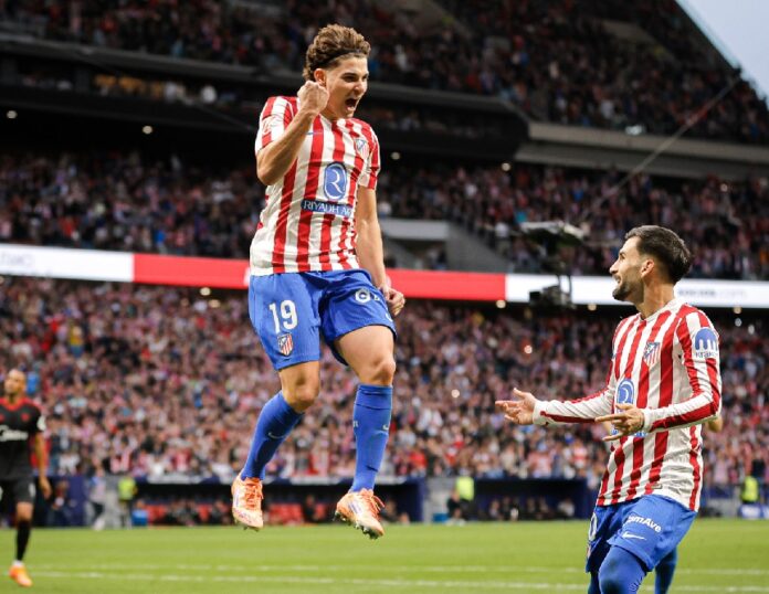 Madrid – Incansable, intenso y ofensivo, el Atlético de Madrid nunca paró hasta que sintió suya la victoria contra el Sevilla, derribado en la segunda parte por un penalti transformado por Julián Alvarez, sentenciado con el 2-0 de Thiago Almada, mérito de Giuliano Simeone, y goleado por el 3-0 de Antoine Griezmann, para insistir en la pugna por LaLiga.