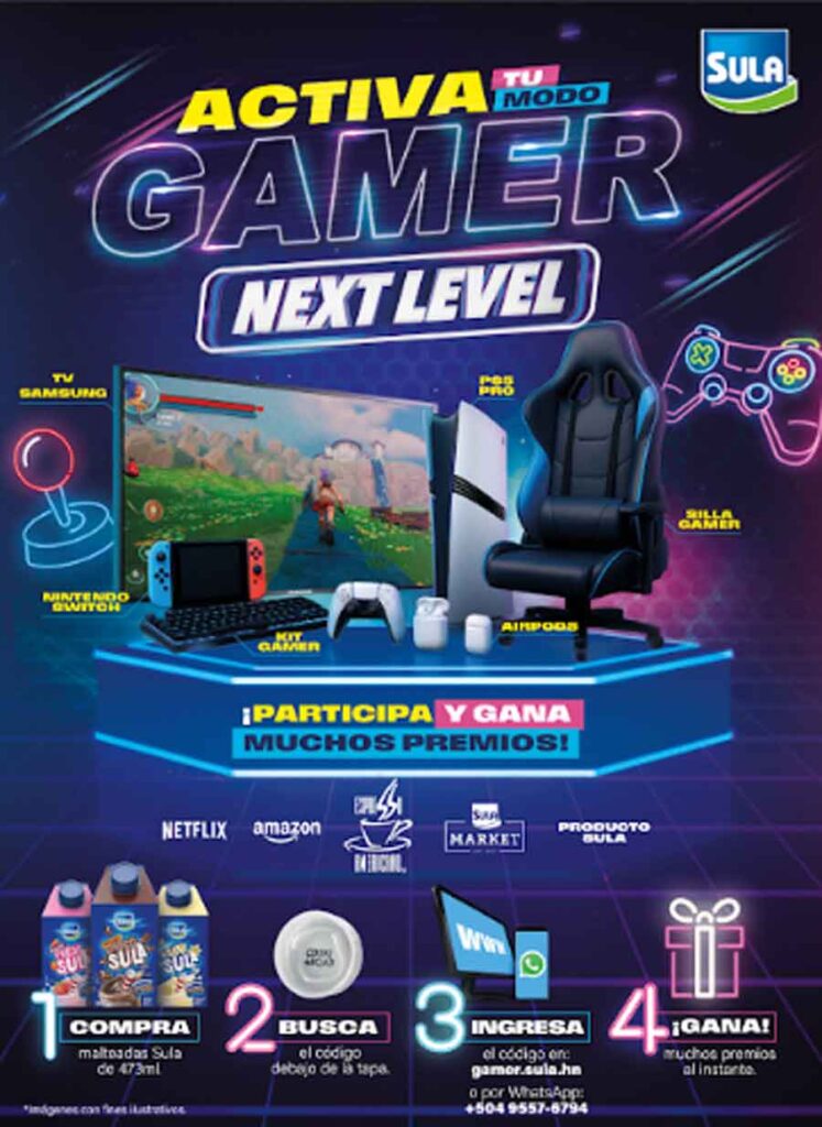 “Nuevamente la marca de los hondureños, Sula, trae esta fantástica promoción con nuestras deliciosas malteadas Sula, activando el modo gamer de los consumidores que disfrutan jugar a la par de una malteada Sula en sus tres sabores: chocolate, fresa y vainilla, los invitamos a participar y ganar fabulosos premios” dijo Bárbara Mendoza.