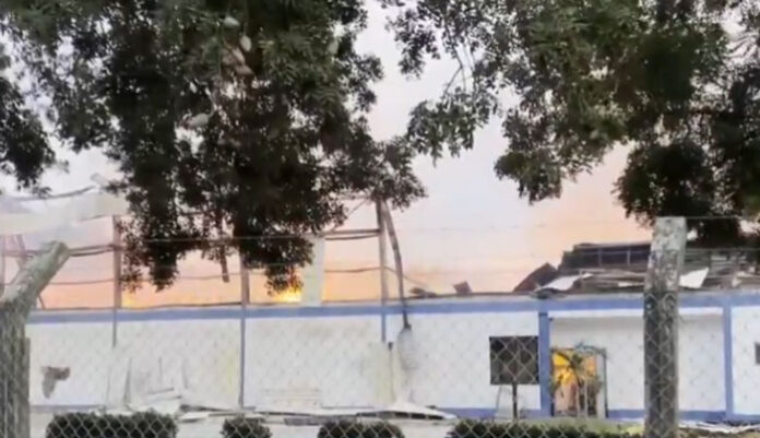 San Pedro Sula- Activo continúa el voraz incendio que arrasó con una recicladora textil en Choloma, Cortés, norte de Honduras.