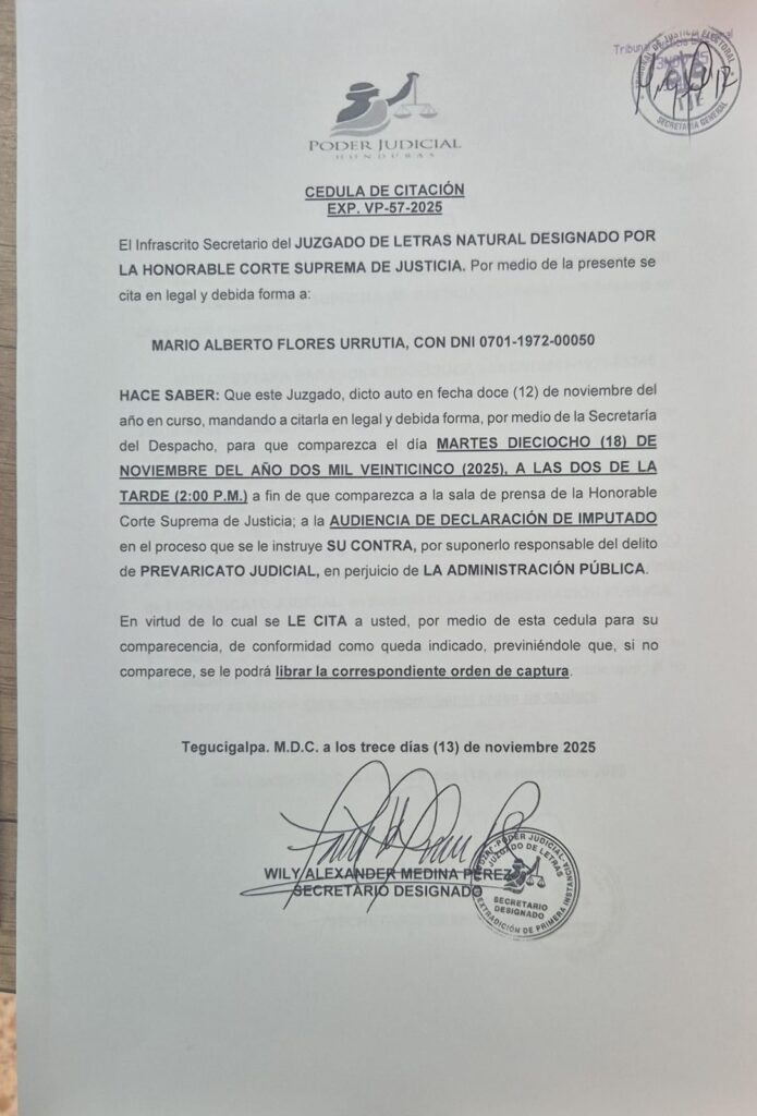 Tegucigalpa – Los magistrados del Tribunal de Justicia Electoral (TJE), Mario Flores Urrutia y Miriam Barahona, fueron citados para el martes 18 de noviembre para comparecer a la audiencia de declaración de imputado.