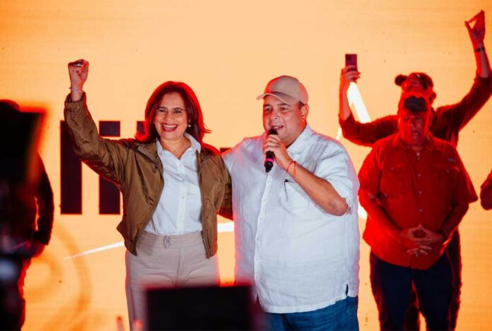 «No reconocemos los resultados de esas elecciones inválidas. Por lo tanto, este triunfo se va a defender con todo el amor que tenemos por este país y este pueblo. Vamos a estar contigo, Jorge (Aldana), defendiéndote, sin retroceder, aquí nadie se rinde», expresó.