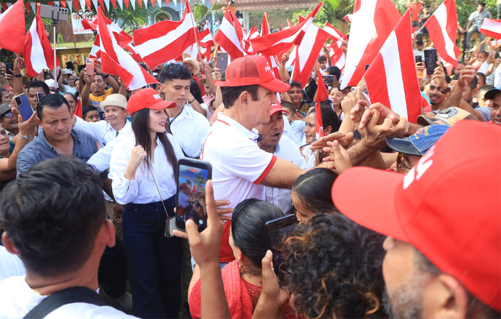 Tela – El presidenciable Salvador Nasralla visitó el municipio de Tela, en el departamento de Atlántida, acompañado de su esposa, Iroshka Elvir, como parte de su gira por la zona norte del país.