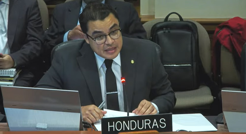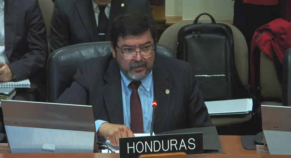 Roberto Quesada, embajador de Honduras ante la OEA, hizo una introducción en donde destacó la administración de la presidenta Xiomara Castro y señaló que se mostraron sorprendidos con la convocatoria a la reunión extraordinaria.