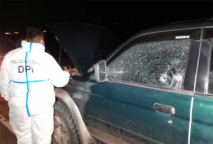 La camioneta presenta orificios de disparos en la parte izquierda del conductor, donde se presume que la víctima recibió los balazos.