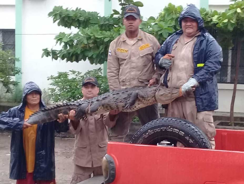 “Nos informaron que en la colonia Víctor Argeñal se encontraba un cocodrilo por lo que se desplazó una unidad con equipo para su rescate”, informó el teniente del Cuerpo de Bomberos, Dimas Sánchez.