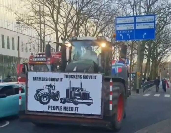 Camioneros neerlandeses imitan a canadienses y bloquean el centro de La Haya