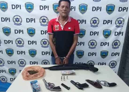 Al momento de su detención se le decomisaron cuatro armas de fuego entre ellas una escopeta, una pistola y dos revólveres, asimismo, una bolsa conteniendo supuesta marihuana, municiones, dinero en efectivo, tres motocicletas y un motor.
