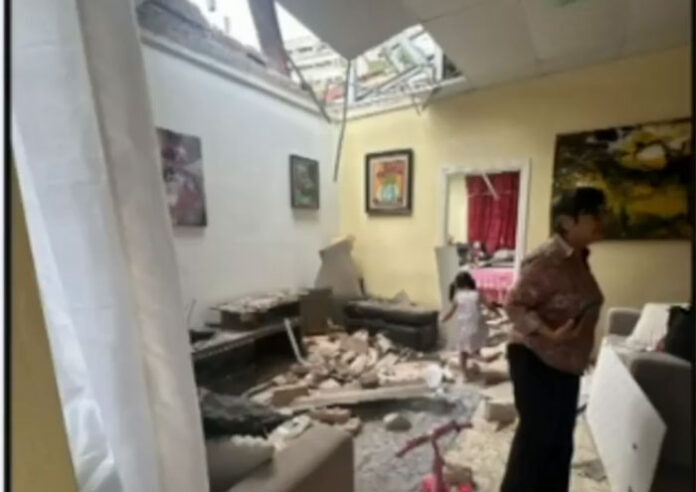 Mientras que en el barrio Las Delicias el techo de una vivienda también cedió.