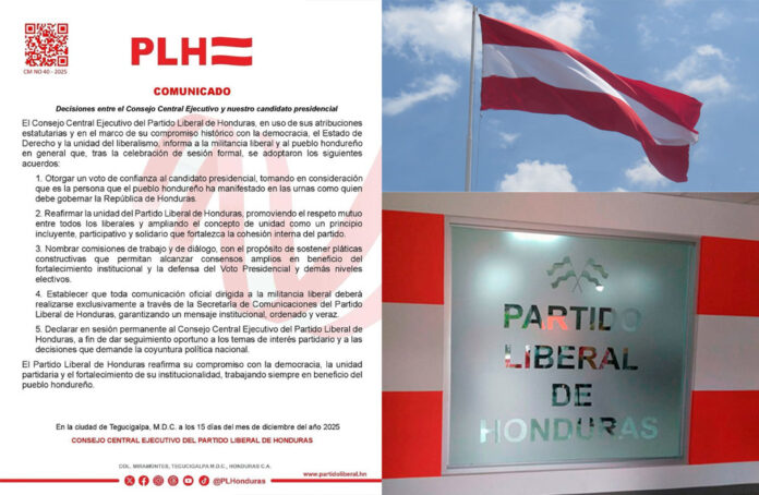 Otro punto clave del pronunciamiento es que toda comunicación dirigida a la militancia liberal deberá canalizarse exclusivamente a través de la Secretaría de Comunicaciones del PLH. Con ello, el partido busca garantizar un mensaje institucional unificado, coherente y verificable, reduciendo vocerías paralelas y versiones contradictorias en medio de la crisis política.