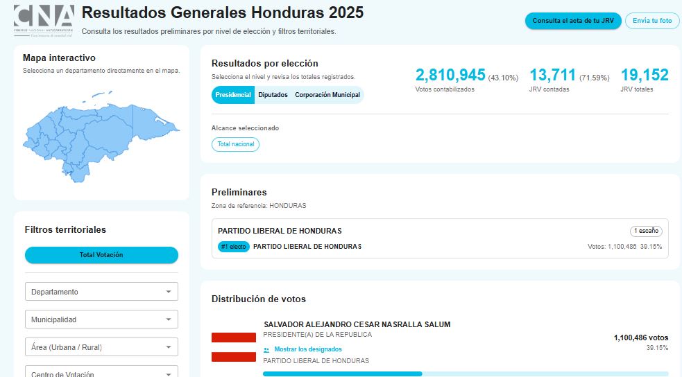 (Leer) Nasralla mantiene ligera ventaja con más del 79 % de actas procesadas
