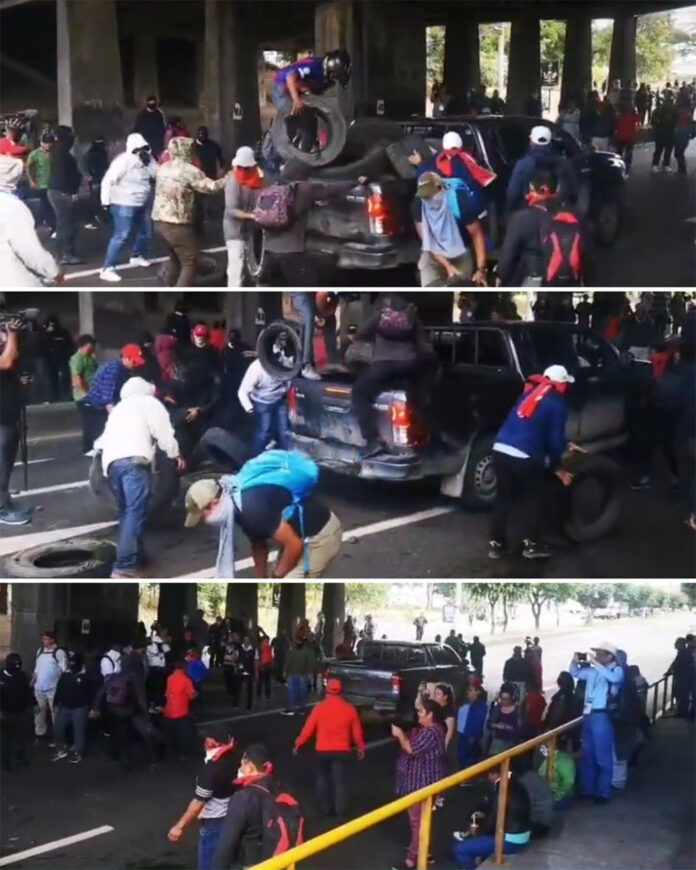 Los partidarios del partido gobernante impidieron el paso de motociclistas y conductores de vehículos y según imágenes divulgadas por medios de comunicación, bajaron a un joven de la motocicleta en que se transportaba y se le fueron a los golpes.