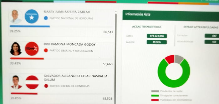 Los datos del CNE muestran un 89.32% de las actas escrutadas que le dan el triunfo a Nasry Asfura.