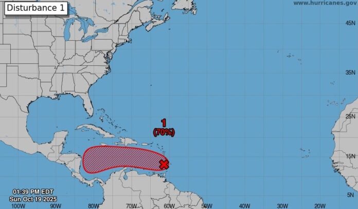 Esta dependencia del Estado no descartó que la onda tropical podría tener condiciones ambientales a medida que disminuya su velocidad en el centro del mar Caribe a mediados de esta semana.
