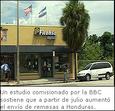 Sin embargo, Gerson Coello, gerente general de Ficohsa Express, una de las principales cadenas de agencias de envíos de dinero a Honduras, descartó que las remesas hayan aumentado hacia el país centroamericano en los últimos meses. “Por el contrario, lo que se ha registrado es una caída en las remesas, aunque no tan aguda como en otros países centroamericanos”, declaró a BBC Mundo. | ![]() |