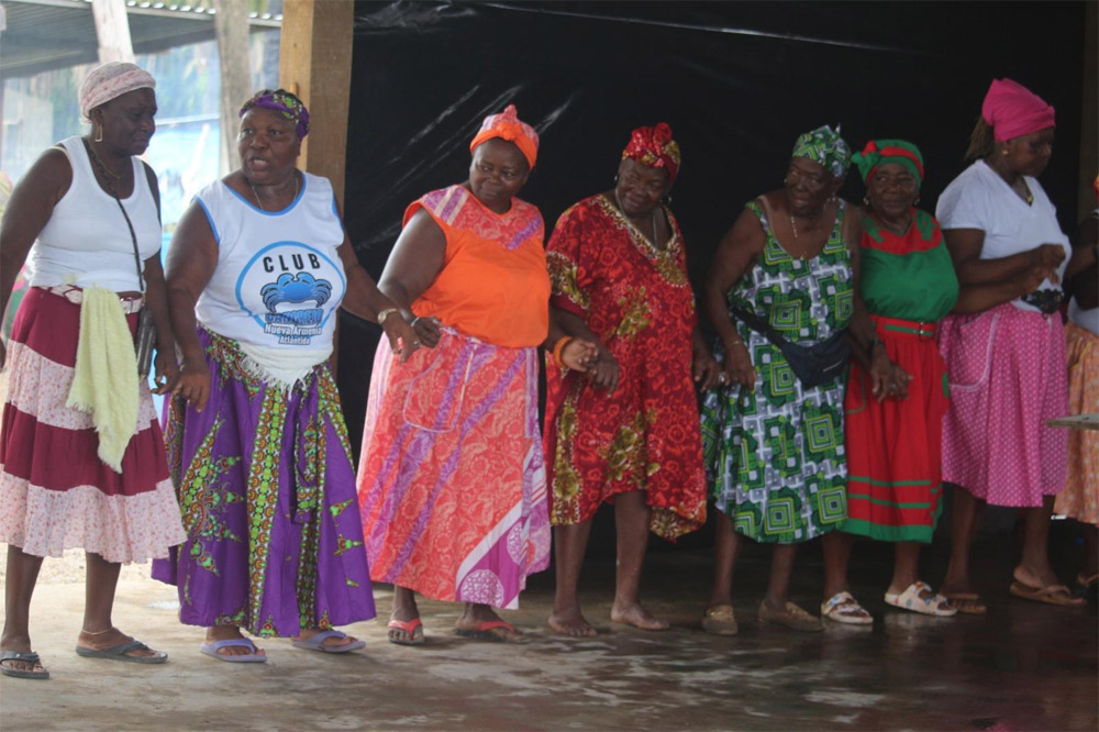 Mujeres entonan y danzan un canto ancestral en Barauda, Nueva Armenia.