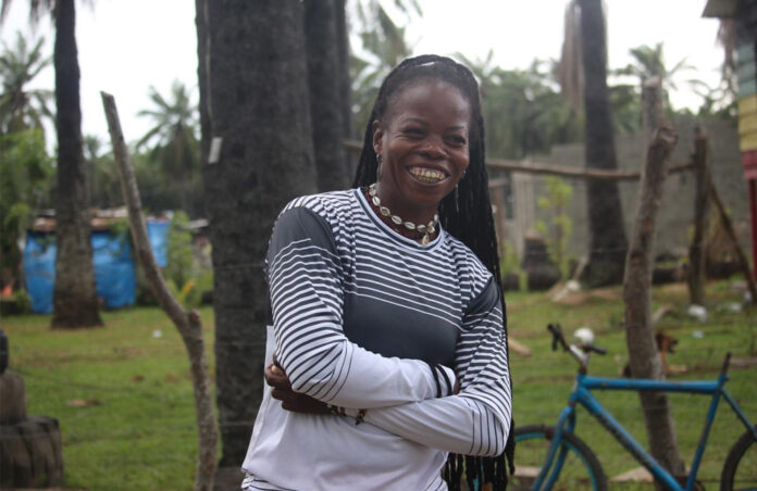 Mabel Robledo visita el sitio de una construcción en Barauda. Reivindica que las tierras pertenecen a la comunidad garífuna de Nueva Armenia y no a la empresa aceitera que las explotó por más de 3 décadas.