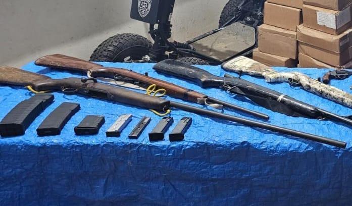 En esta operación policial se logró el decomiso de cuatro fusiles, cargadores, municiones y un paquete de droga
