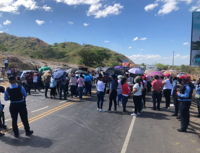 Igual reclamó realizan los docentes del departamento de Choluteca, quienes se manifiestan en la carretera Panamericana. En la zona se registra un fuerte tráfico vehicular. IR