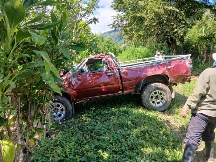 Santa Bárbara – Dos personas fallecieron y varias resultaron heridas en un accidente vial tipo volcamiento en la aldea La Ruda en el municipio de Las Vegas en el departamento de Santa Bárbara, occidente de Honduras.