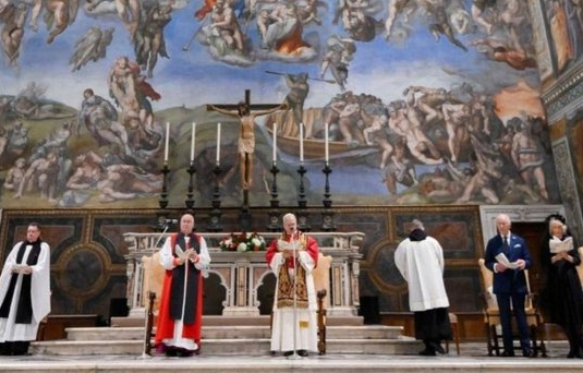 Ciudad del Vaticano.- El papa León XIV y el arzobispo de York, Stephen Cottrell, presiden en la Capilla Sixtina en el Vaticano la oración ecuménica dedicada a la defensa del medio ambiente en la que participan los reyes de Reino Unido, Carlos III y Camila, un evento histórico que se produce después de casi 500 años de la reforma anglicana.