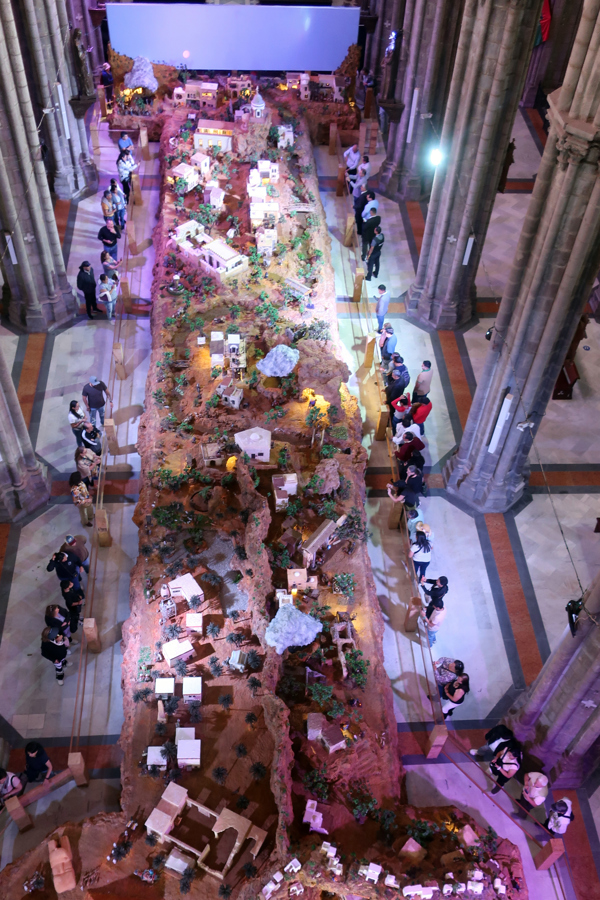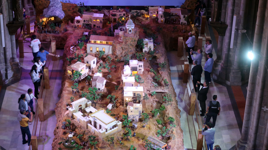 Setenta días tardó la instalación del pesebre en la nave central de la Basílica, que se levanta majestuosa en lo alto del centro histórico de Quito, donde cientos de fieles y turistas visitan el pesebre al que la Fundación Padre Jimmy Arias cataloga como «el más grande de Sudamérica».