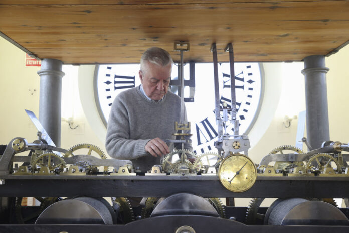 Una vez más, el segundero y el minutero del reloj de la Puerta del Sol se encuentran listos, engrasados y a punto para dar la bienvenida al nuevo año 2026, después de haber sido sometidos a un proceso de rehabilitación el pasado mes de marzo. EFE/ Víctor Lerena
