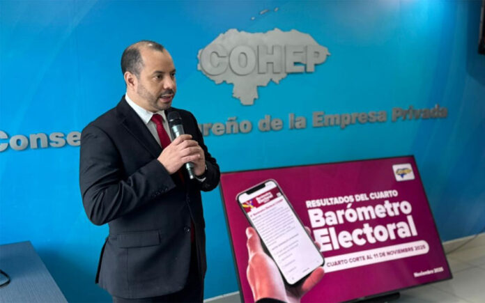 Este lunes, el Consejo Hondureño de la Empresa Privada (Cohep) presentó los resultados de la cuarta edición del barómetro electoral en la que alerta sobre una desconfianza institucional y deterioro del clima de inversión.
