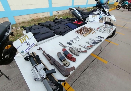 Al momento de su detención se les decomisó: un arma de fuego tipo fusil AK-47, un arma de fuego tipo fusil AR-15, tres pistolas, un revolver, seis chalecos antibalas, tres cargadores para AK-47 y munición para AK-47.