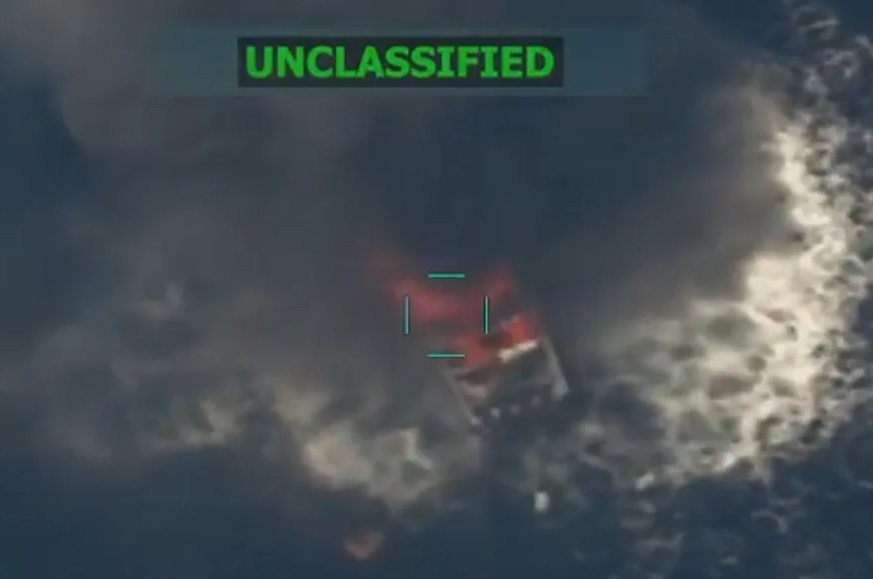 El secretario de Guerra, Pete Hegseth, informó en su cuenta de X que la nave fue identificada por los servicios de inteligencia y aseguran que «transitaba por una ruta conocida del narcotráfico y cargaba estupefacientes».