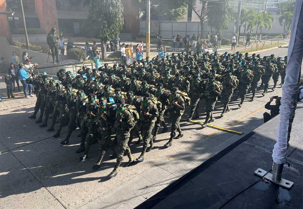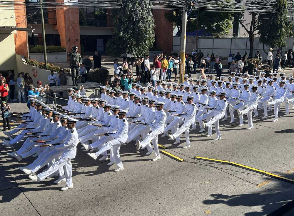Mediante carrozas, desfile de tropas, unidades militares, vehículos castrenses y pelotones de las academias verde olivo, el instituto armado marchó desde las instalaciones del Polideportivo de la UNAH hasta inmediaciones del Hospital Escuela.