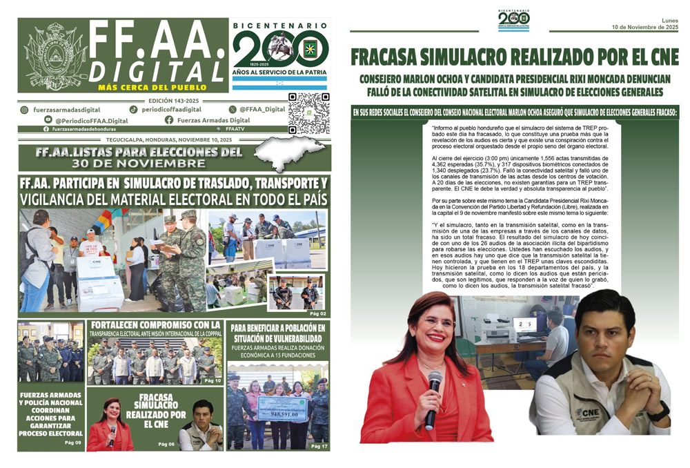 Tegucigalpa – A través de su periódico digital, las Fuerzas Armadas se unieron a la narrativa del gobernante partido Libertad y Refundación (Libre), sobre “el fracaso” del simulacro electoral denunciado por la presidenciable Rixi Moncada y su círculo cercano.