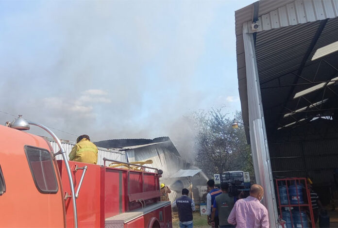 Afortunadamente el Cuerpo de Bomberos trabaja para controlar las llamas y no se extienda a la bodega.