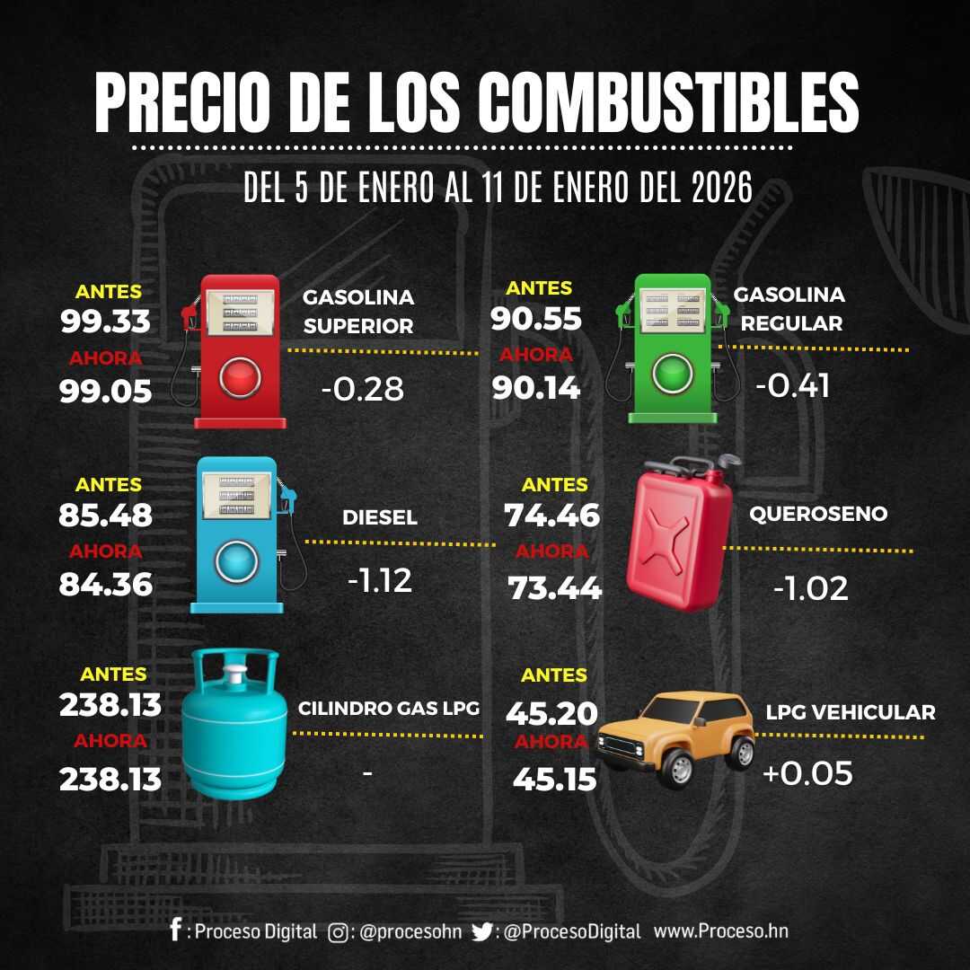 InfografiasGasolinas 05.01.2026Por: Proceso Digital2 de enero de 2026FacebookTwitterWhatsAppEmailImpresión Noticias recientes Deportes0-3. El Lens pasa la presión al PSG Nacionales“Basta ya de estar jodiendo con mi nombre”, dice expresidente Hernández en reveladora entrevista Deportes0-1. Leao agita el liderato FarándulaEncuentran muerta a la hija del actor Tommy Lee Jones Ciencia y TecnologíaFormulan un papel térmico para imprimir tiques a partir de la madera