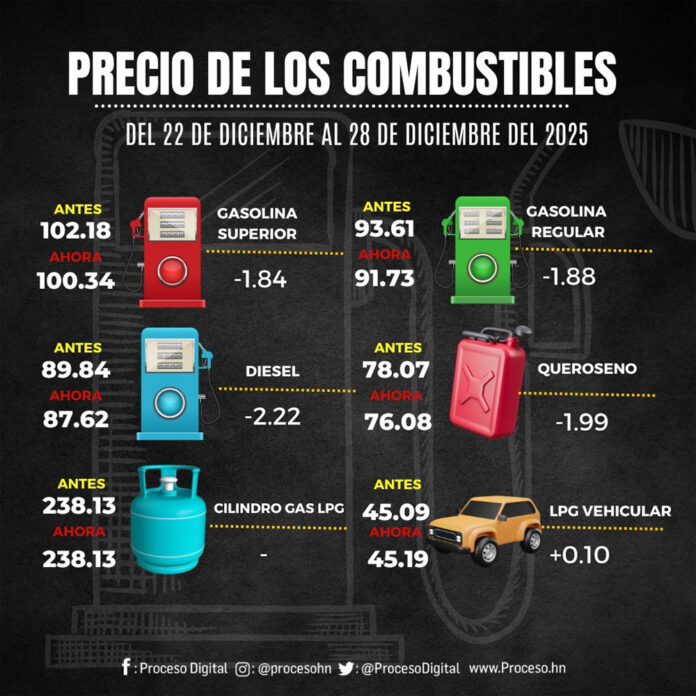 InfografiasGasolinas 22.12.2025.Por: Proceso Digital19 de diciembre de 2025FacebookTwitterWhatsAppEmailImpresión Noticias recientes DeportesWawrinka anuncia que el 2026 será el último de su carrera EconomíaGerente de la Chico pide al Gobierno que tenga “decencia” y paguen los L. 4,400 millones que les adeudan InternacionalesEEUU destruye otras dos lanchas en el Pacífico Oriental y mata a cinco tripulantes NacionalesAportantes de Koriun Choloma exigen que gobierno les cumpla DeportesBrasil jugará con Francia el 26 de marzo en Boston y después con Croacia en Orlando