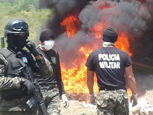 El portavoz de Policía Militar del Orden Público, teniente Mario Rivera, informó que la droga incinerada se decomisó en su mayoría en la zona sur de Honduras, en un operativo en el que se decomisaron 176 kilos del alcaloide.