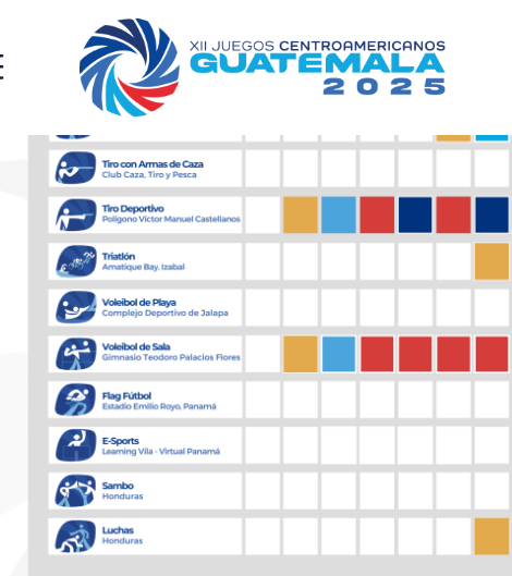 -Las competencias deportivas transcurrirán en 10 departamentos (provincias) de Guatemala, con subsedes en Panamá y Honduras.