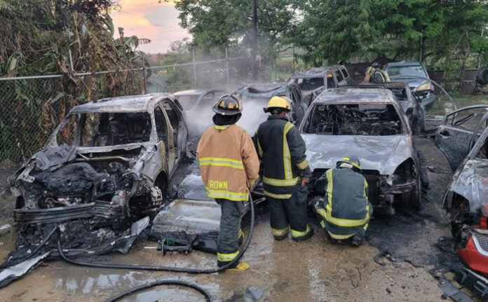 Tegucigalpa- Ocho vehículos de importación fueron consumidos por un incendio en un predio en Puerto Cortés, en la zona norte del país.