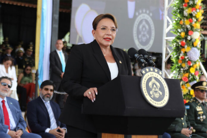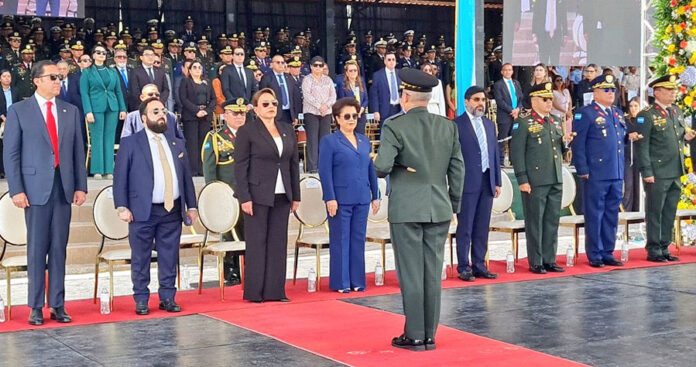 La mandataria hondureña participó este viernes en la ceremonia de conmemoración del natalicio del general José Francisco Morazán Quezada, del Día del Soldado Hondureño en Campo Parada Marte.