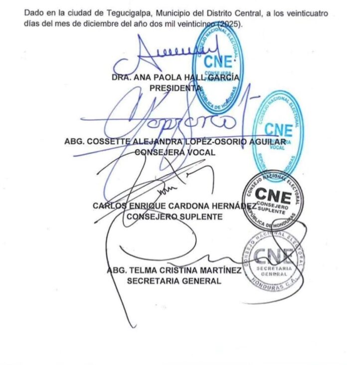 Lo cierto es que el nombre de Carlos Enrique Cardona Hernández, consejero suplente del Consejo Nacional Electoral (CNE), no pasó desapercibido tras aparecer entre las firmas de la declaratoria oficial que proclamó a Nasry Asfura como presidente electo de Honduras para el período 2026-2030.