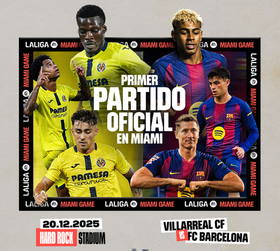 Villarreal (Castellón, España) – LaLiga anunció este miércoles que el partido correspondiente a la jornada 17 de Primera División que enfrentará al Villarreal y al Barcelona se disputará el próximo 20 de diciembre en el Hard Rock Stadium de Miami (Florida, EEUU).