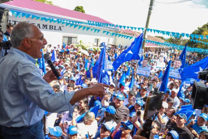 Desde el municipio de Tambla, en el departamento de Lempira, el presidenciable nacionalista habló de su visión internacional, en momentos en que Estados Unidos anunció que tras lograr acuerdos con el presidente de El Salvador, Nayib Bukele y Bernardo Arevalo de Guatemala para reducir el arancel adicional del 10 % a las exportaciones a ese país, mientras Honduras está a la espera de que el gobierno de Donald Trump lo llame para seguir las negociaciones.