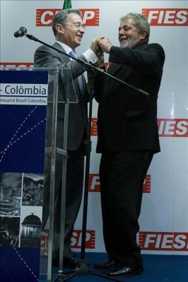 Lula y Uribe clausuraron hoy en Sao Paulo el Encuentro Empresarial Brasil-Colombia, en el que participaron autoridades, ministros y 246 empresarios de ambos países, 106 de ellos colombianos.