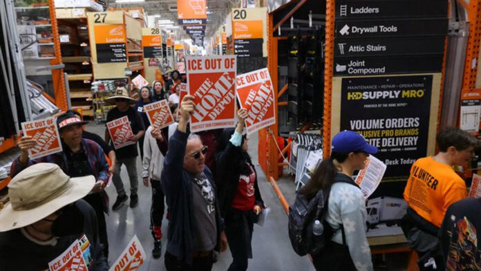 Los Ángeles (EEUU) – Manifestantes en contra del Servicio de Control de Inmigración y Aduanas (ICE) realizaron una protesta simbólica en un Home Depot de California que consistía en comprar un raspador de hielo, en alusión a la traducción al español de las siglas de la agencia, para expresar su rechazo a la presunta colaboración de la tienda con operaciones migratorias.