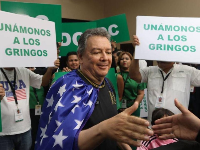 De hecho, en sus presentaciones y recorridos públicos algunas veces aparece arropado con la bandera de Estados Unidos, indicando que con ello se cumpliría el “sueño americano”, pero en Honduras.