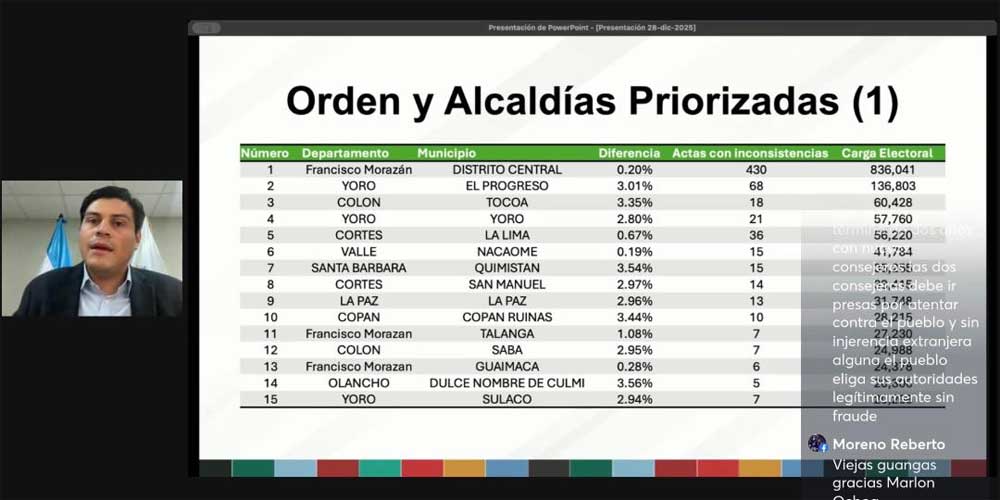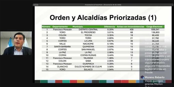 “Se le da mayor importancia al nivel de diputados con la intención de no contar el nivel de las corporaciones municipales, para declarar electo aquí en el Distrito Central a falta de 435 actas que todavía presentan inconsistencias y que representan el 25 % de la elección”, especificó.