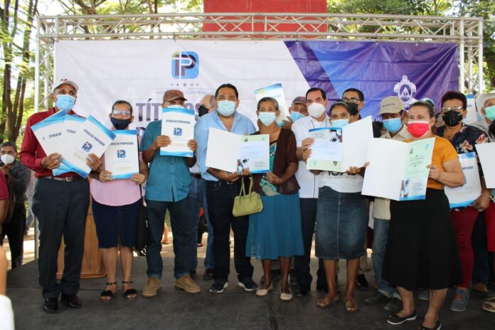 Choluteca – Un total de 12 mil 165 personas de 25 comunidades de Choluteca fueron beneficiadas por parte del Instituto de la Propiedad (IP) tras la entrega masiva de títulos de propiedad en la zona sur del país.