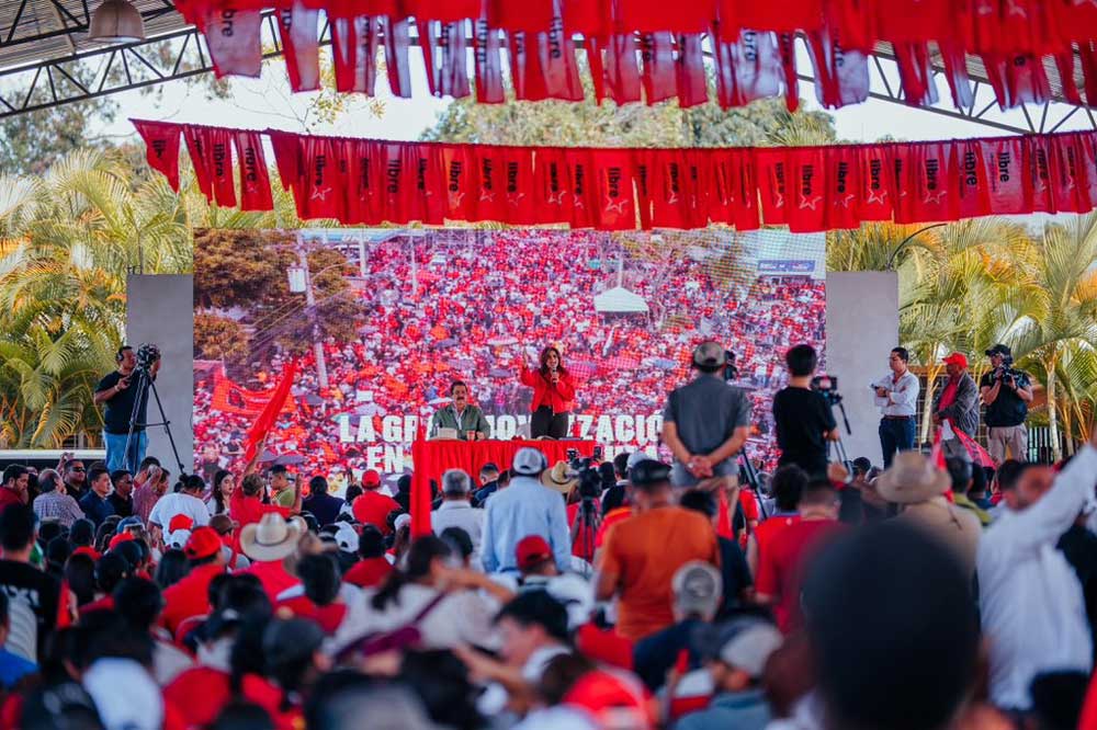 La presidenta recordó que Libre nació en las calles durante la resistencia popular, y destacó los avances de sus cuatro años de gobierno.