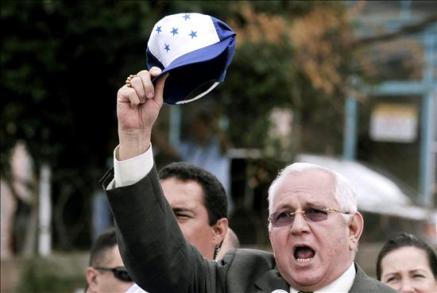 «Yo voy a participar, yo le pido a la población hondureña que igual participemos, porque aquí dictadores no queremos, de ninguna clase», respondió Micheletti ante preguntas de la prensa sobre la protesta contra Chávez.