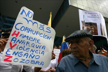 «Chávez go home (Cuba)», rezaba una de las decenas de pancartas, mientras que los seguidores del Gobierno se reunieron en otro punto de la ciudad para deplorar lo que calificaron como una «incitación al odio y al magnicidio» de los convocantes del «No más Chávez».